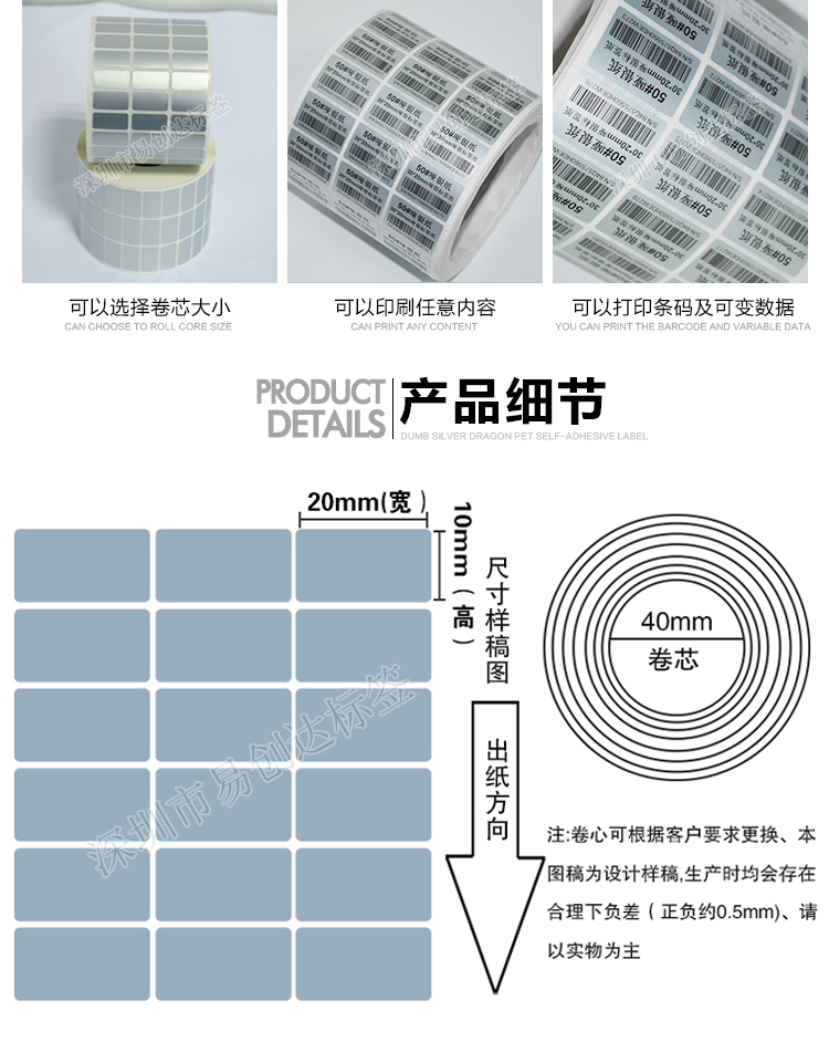 哑银标签纸20*10mm
